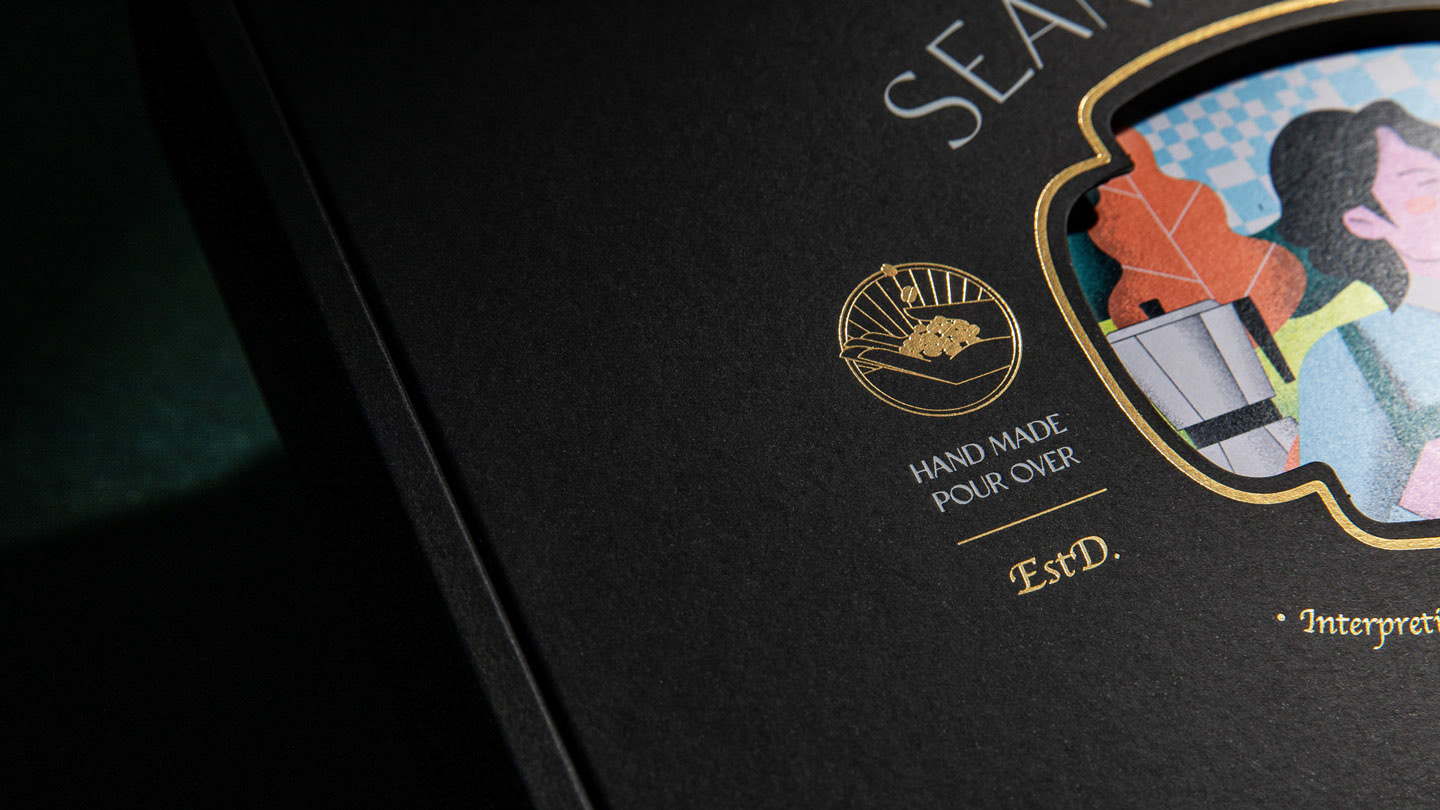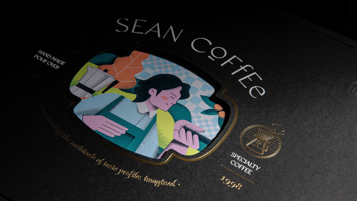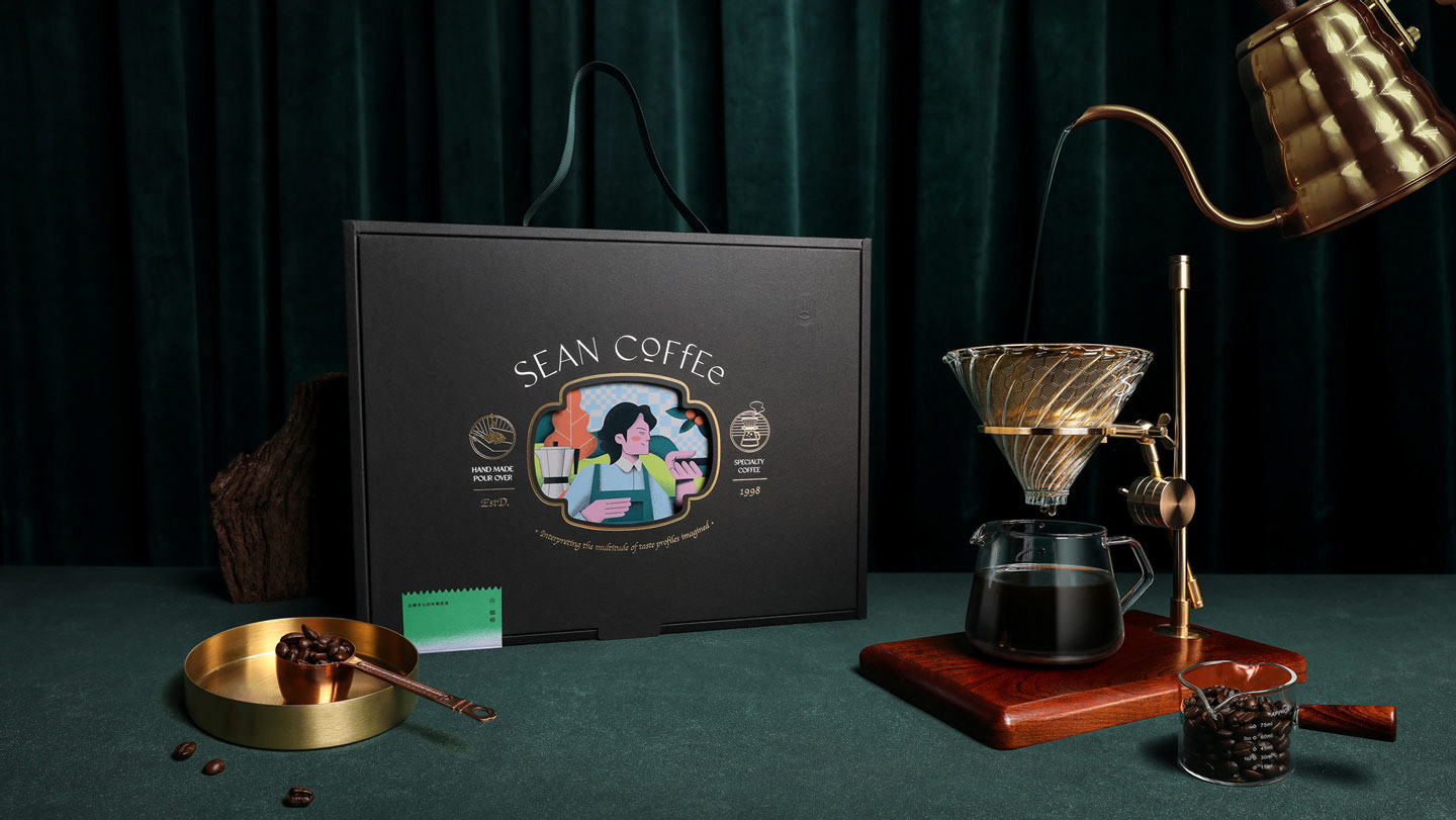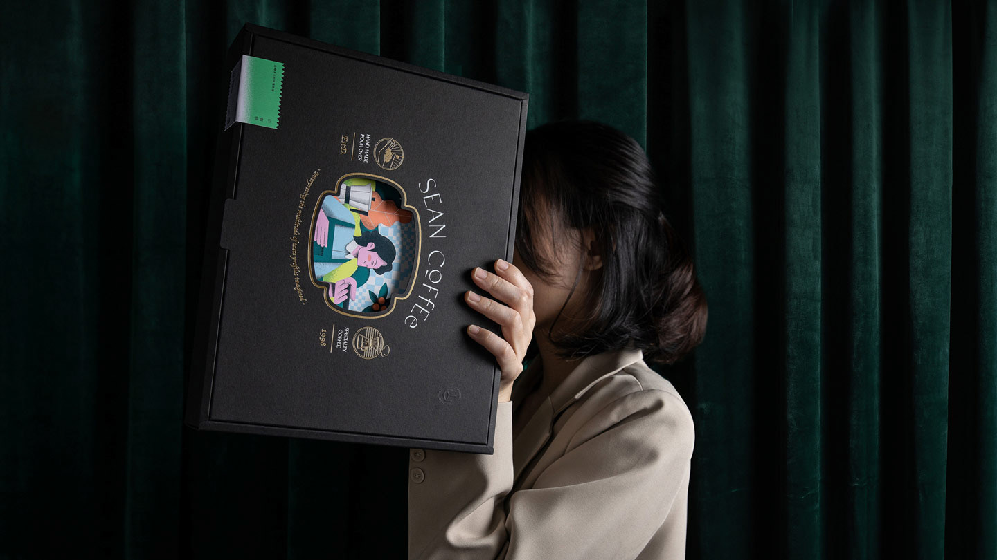 Sean Coffee® is a Taiwanese brand known for its exquisite coffee. We believe in the art of roasting small batches of single-origin beans to perfection. With our new slogan, "Unleashing the Multifaceted Imagination of Taste," we invite customers to experience the journey from coffee origins to their cup. The packaging illustration features our coffee expert, Sean, roasting beans in a forest, immersing consumers in the essence of our coffee. The warm "fluorescent orange" color complements the aromatic coffee cherries. Using 7-color Pantone® special inks and layered printing, we capture the diverse and rich flavors of Mountain Coffee®. The packaging includes a black outer box, inner lining, and illustrated cards. We enhance the premium coffee experience with techniques like foil stamping and embossing. To ensure consistency and flexibility, we recommend replacing the inner cards based on different themes, reducing printing costs and our carbon footprint. Experience the art of Sean Coffee® and join us in creating a better future for our planet.